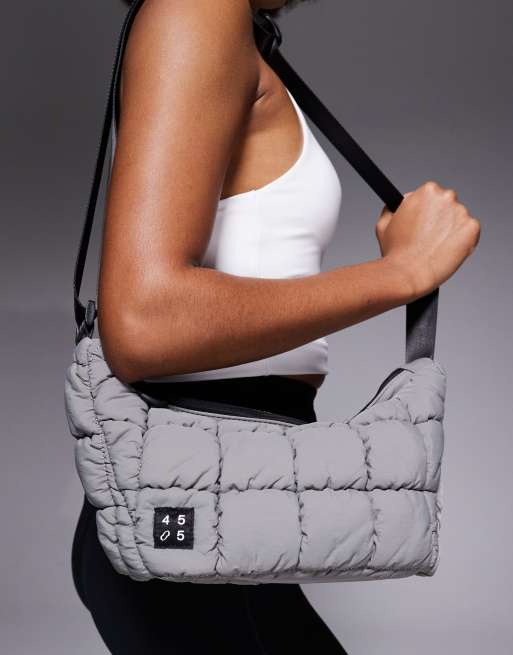 4505 – Pikowana szara torebka na ramię z wewnętrzną kieszenią z materiału