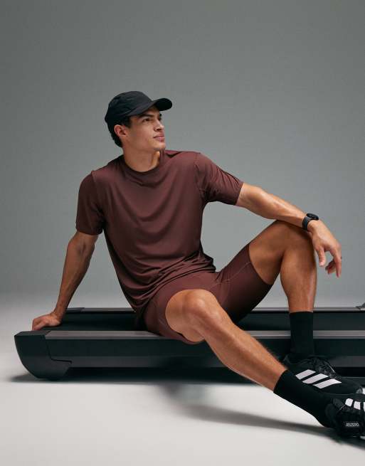 4505 Premium – Szybkoschnący brązowy T-shirt do biegania z łączonych szwów i wstawką z siateczki