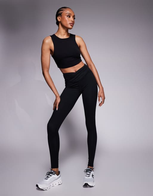 4505 Tall – Icon – Miękkie czarne legginsy do jogi z kopertową talią