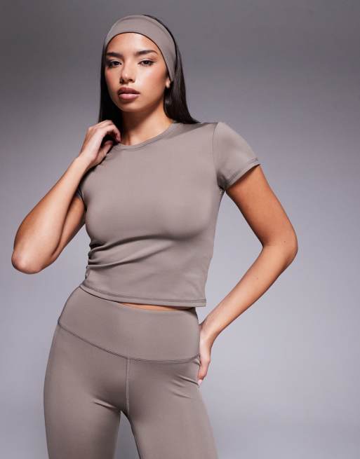 4505 – Zielonobrązowy sportowy T-shirt o dopasowanym kroju w odcieniu Morel