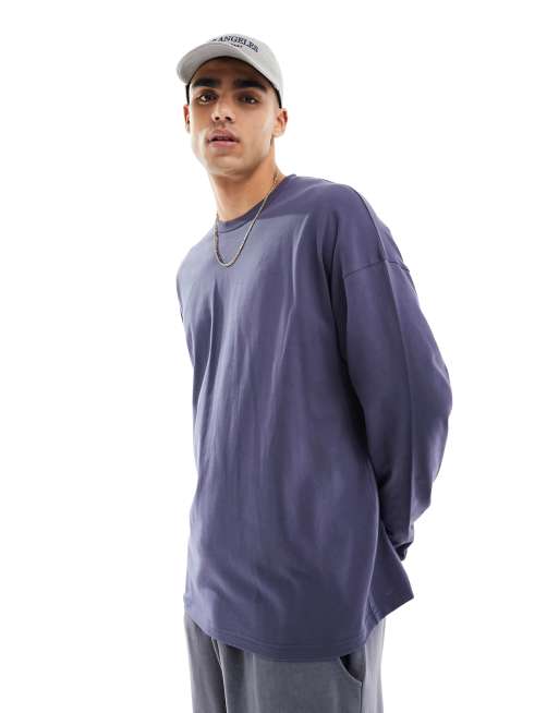 ASOS 4505 – Niebieskoszary szybkoschnący T-shirt sportowy oversize z długim rękawem