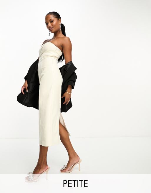 4th & Reckless Petite Exclusive – Kremowa sukienka midi z dekoltem bandeau z imitacji skóry