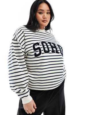 4th & Reckless Plus Exclusive – Kremowo-granatowa bluza w paski z logo z napisem „Soho” z dzianiny boucle