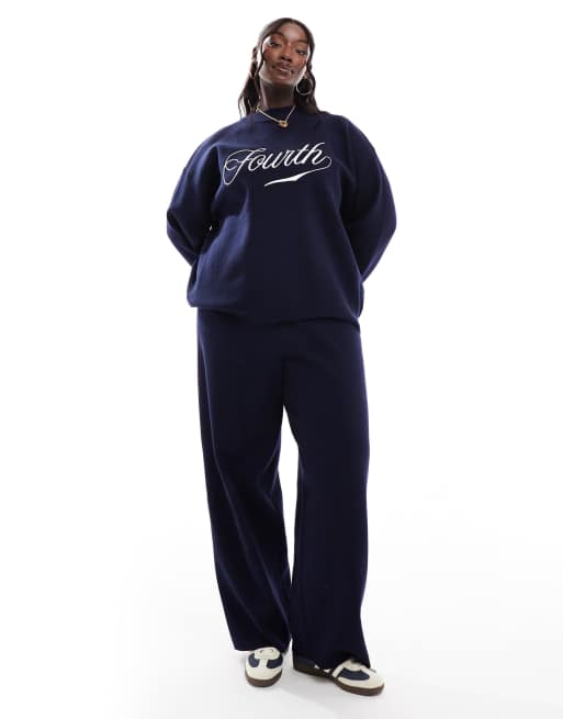 4th & Reckless Plus – Granatowy dzianinowy zestaw ze swetrem z golfem i spodniami z szerokimi nogawkami i logo