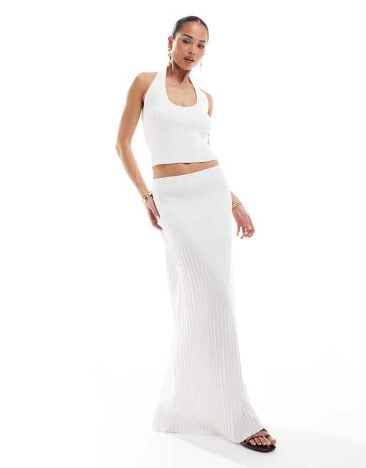 4th & Reckless – Biały dzianinowy top z dekoltem halter i wycięciem na plecach, część zestawu
