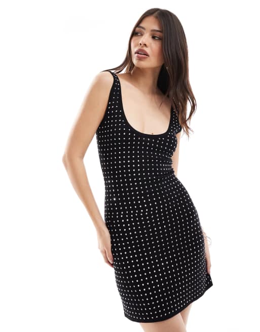 4th & Reckless – Czarna dzianinowa sukienka mini bez rękawów z dżetami na całej powierzchni