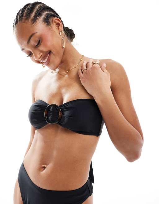 4th & Reckless – Czarne bikini: góra z dekoltem bandeau i szylkretową sprzączką oraz dół