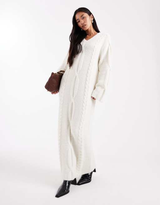 4th & Reckless – Kremowa sukienka maxi z dekoltem w szpic z dzianiny o warkoczowym splocie w dotyku przypominającej wełnę
