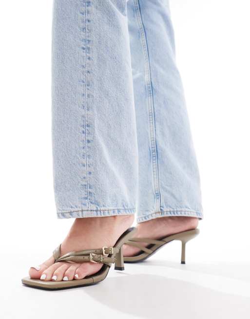 4th & Reckless – Nadia – Oliwkowe sandały o fasonie japonek na średnim obcasie