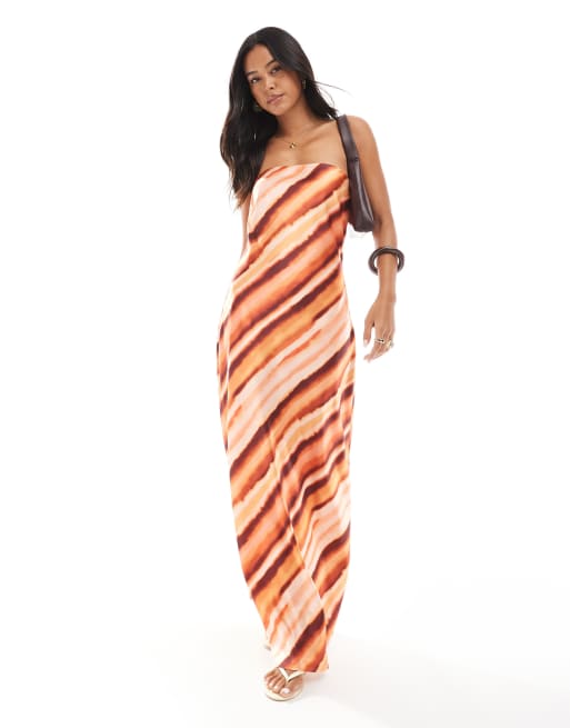4th & Reckless – Satynowa sukienka maxi z dekoltem bandeau w rdzawe paski z efektem ombre