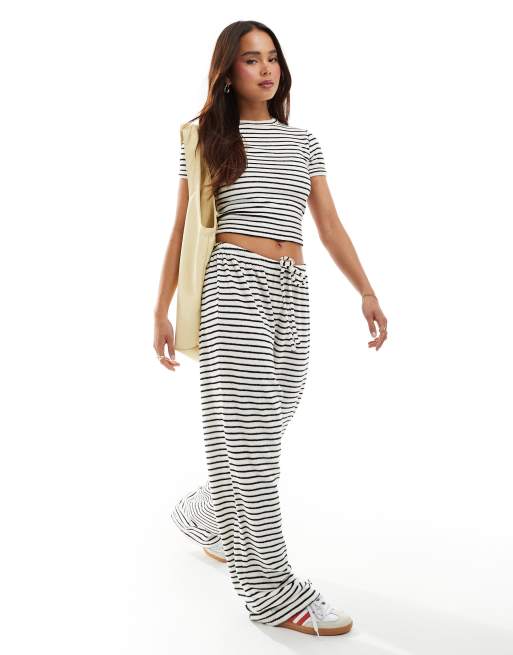 4th & Reckless – Spodnie z szerokimi nogawkami, z materiału frotté w paski, część zestawu