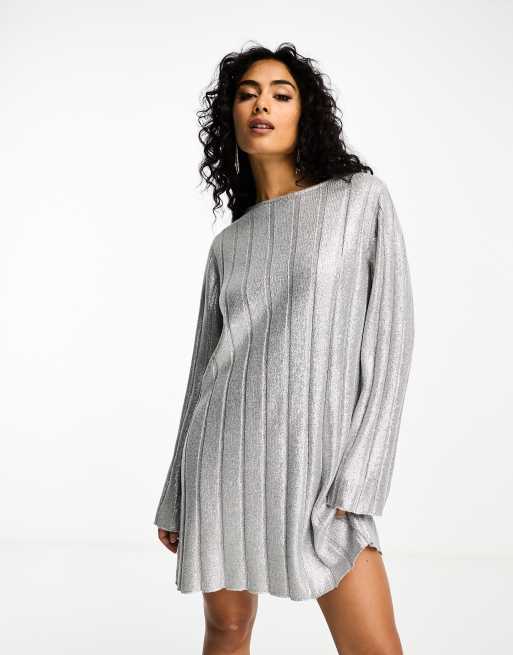 4th & Reckless – Srebrna metaliczna sukienka dzianinowa mini z wiązaniem na plecach