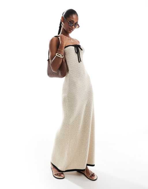 4th & Reckless – Szydełkowana sukienka plażowa maxi w kolorze ecru z kontrastową lamówką i wiązaniem