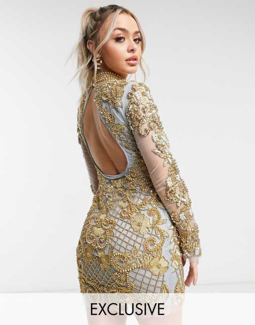 A Star Is Born – Ekskluzywna zdobiona sukienka mini w kolorze starego złota i lawendy