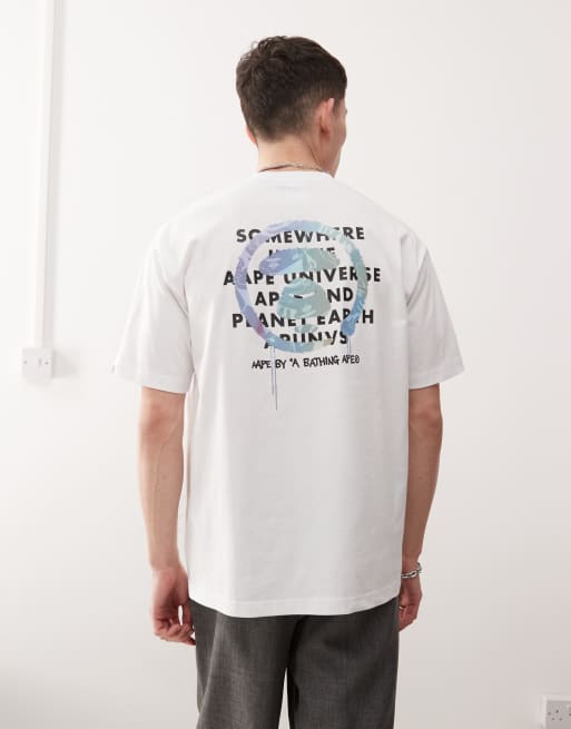AAPE By A Bathing Ape – Biały T-shirt z kolorowym nadrukiem z logo na plecach