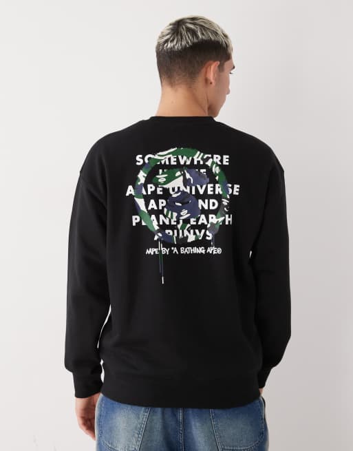AAPE by A Bathing Ape – Czarna bluza oversize z okrągłym dekoltem i nadrukiem z logo we wzór moro na piersi i plecach