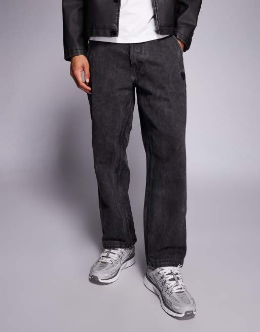 AAPE By A Bathing Ape – Czarne barwione spodnie o luźnym kroju z bawełnianego diagonalu