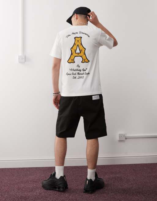 AAPE By A Bathing Ape – Kremowy T-shirt z nadrukiem z logo na plecach