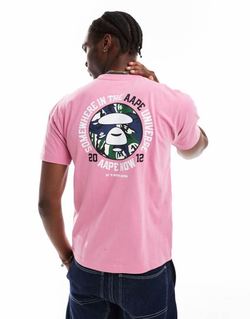 AAPE By A Bathing Ape – Różowy T-shirt z nadrukiem moro z logo na plecach