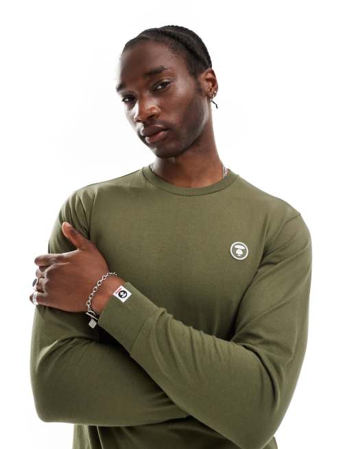 AAPE By A Bathing Ape – T-shirt z długim rękawem w ciemnym kolorze khaki z logo