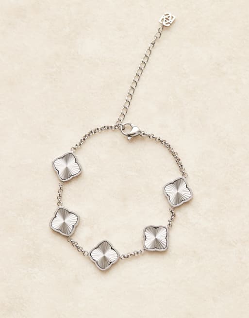 Abbott Lyon – Bransoletka ze stali nierdzewnej z fakturowanymi koniczynkami w kolorze srebra