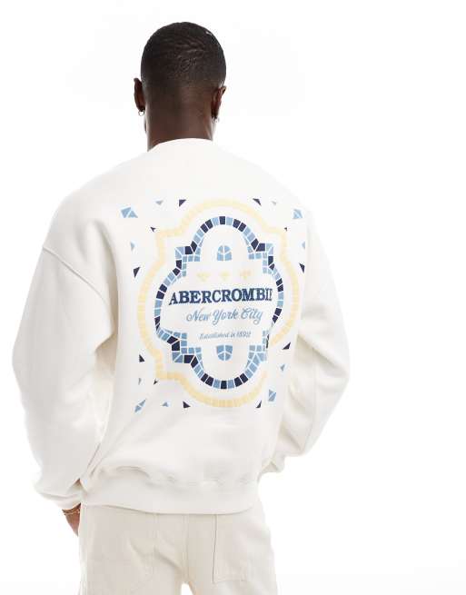 Abercrombie & Fitch – Biała bluza z haftowanym logo z przodu i na plecach