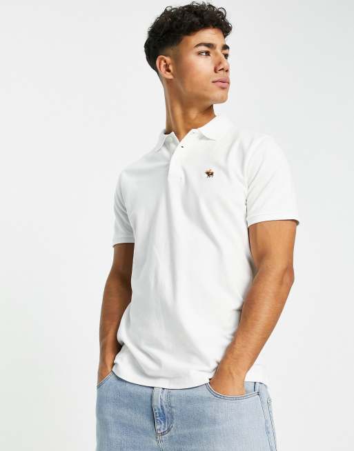 Abercrombie & Fitch – Biała koszulka polo z piki z logo 3D