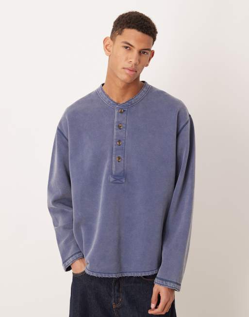 Abercrombie & Fitch – Bluza z dekoltem typu henley w spranym granatowym kolorze