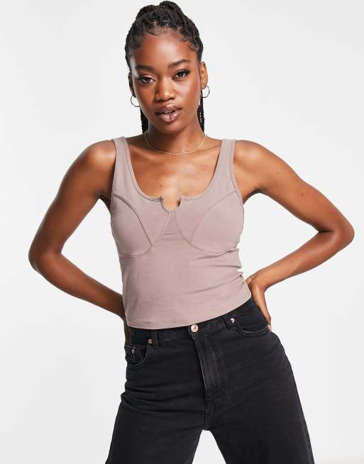 Abercrombie & Fitch – Brązowy bezszwowy podkoszulek o gorsetowym kroju