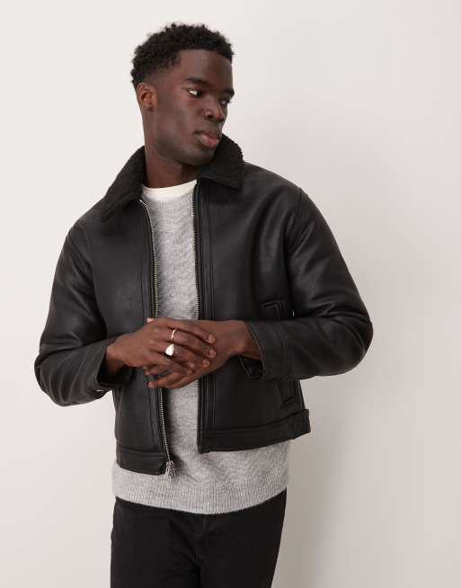 Abercrombie & Fitch – Czarna podszyta kożuszkiem kurtka z imitacji skóry