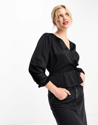 Abercrombie & Fitch – Czarna satynowa bluzka z kopertowym przodem