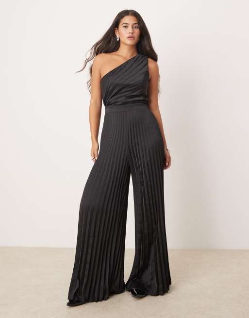 Abercrombie & Fitch – Czarny plisowany kombinezon na jedno ramię