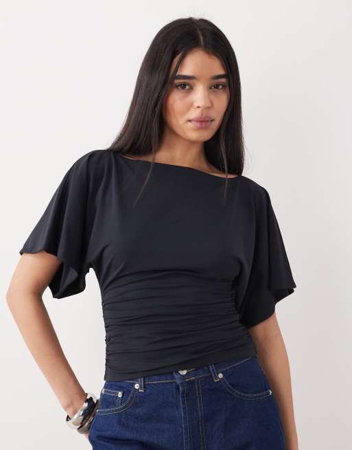 Abercrombie & Fitch – Czarny top z prostym dekoltem i zwiewnymi rękawami