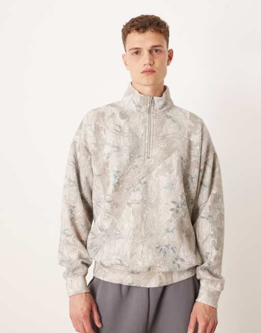 Abercrombie & Fitch – Essential – Jasna bluza z suwakiem pod szyją we wzór moro