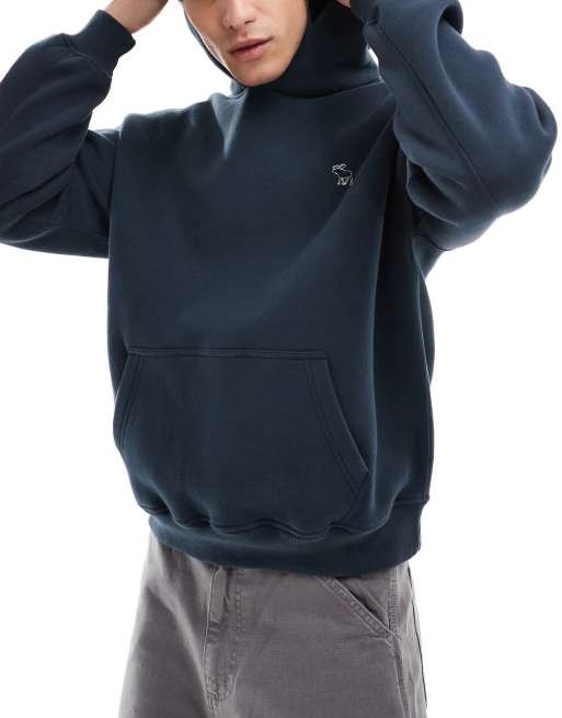 Abercrombie & Fitch – Granatowa bluza z kapturem i haftowanym logo