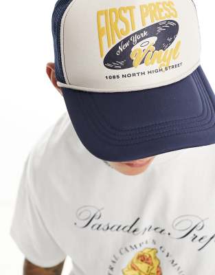Abercrombie & Fitch – Granatowo-biała baseballowa czapka z daszkiem