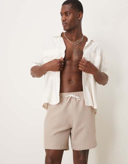 Abercrombie & Fitch – Jasnobrązowe ściągane na sznurek szorty kąpielowe o długości 7 cali