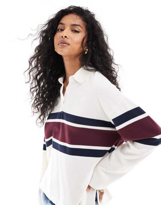 Abercrombie & Fitch – Kremowy top w stylu rugby z kontrastowymi paskami