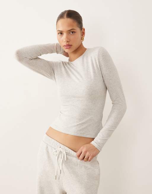 Abercrombie & Fitch – Krótki szary T-shirt z długimi rękawami