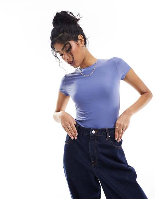 Abercrombie & Fitch – Miękki matowy T-shirt w niebieskim kolorze