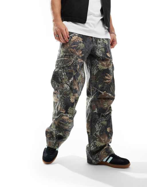 Abercrombie & Fitch – Obszerne spodnie bojówki z diagonalu z kolorowym wzorem moro