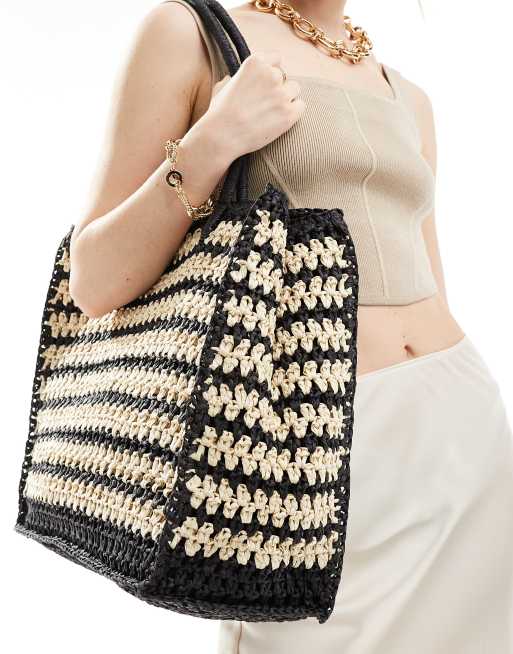 Abercrombie & Fitch – Plażowa torba typu shopper w czarno-kremowe paski