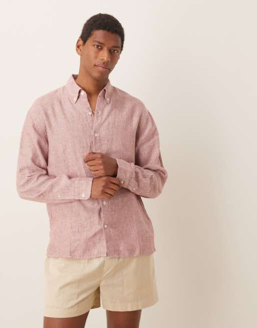 Abercrombie & Fitch – Różowa fakturowana koszula lniana