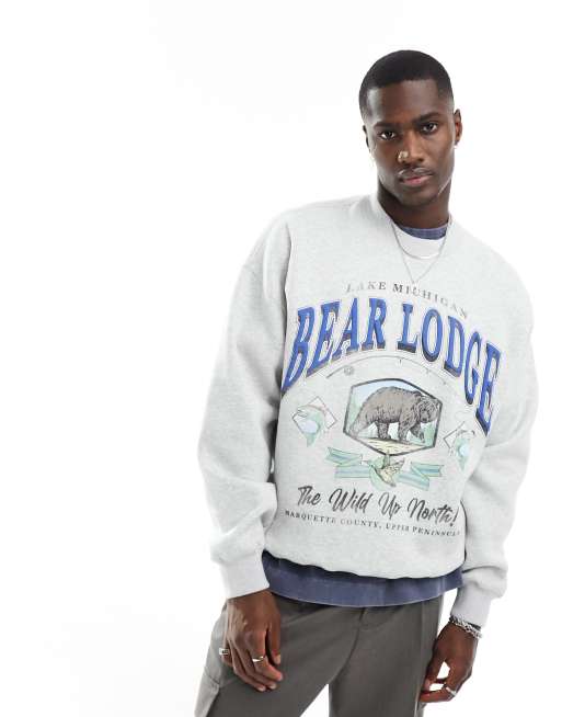 Abercrombie & Fitch – Szara melanżowa bluza z nadrukiem Bear Lodge