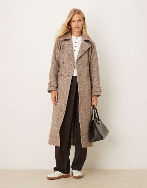 Abercrombie & Fitch – Szarobeżowy wełniany trencz z paskiem