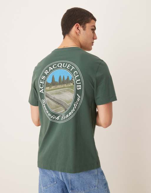 Abercrombie & Fitch – Szary klasyczny T-shirt z motywem tenisowym na plecach