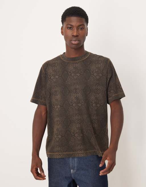 Abercrombie & Fitch – T-shirt oversize z wężowym wzorem z efektem sprania