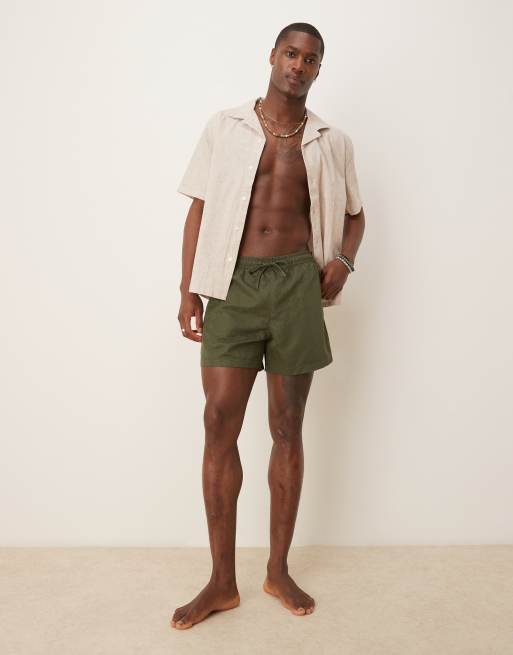 Abercrombie & Fitch – Zielone szorty kąpielowe o długości 5" w liście