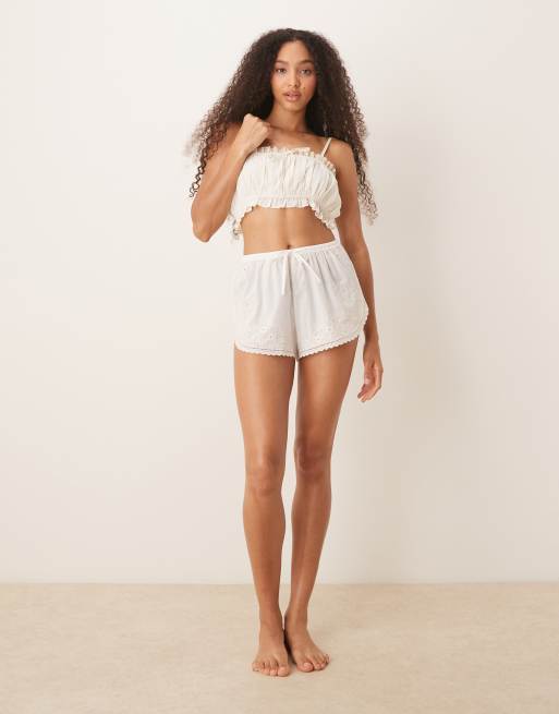 Abercrombie & Fitch – Zwiewne białe szorty z karbowanym brzegiem