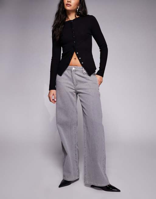 Abrand Jeans – 94 – Szare wygodne jeansy z szerokimi nogawkami i podwyższonym stanem